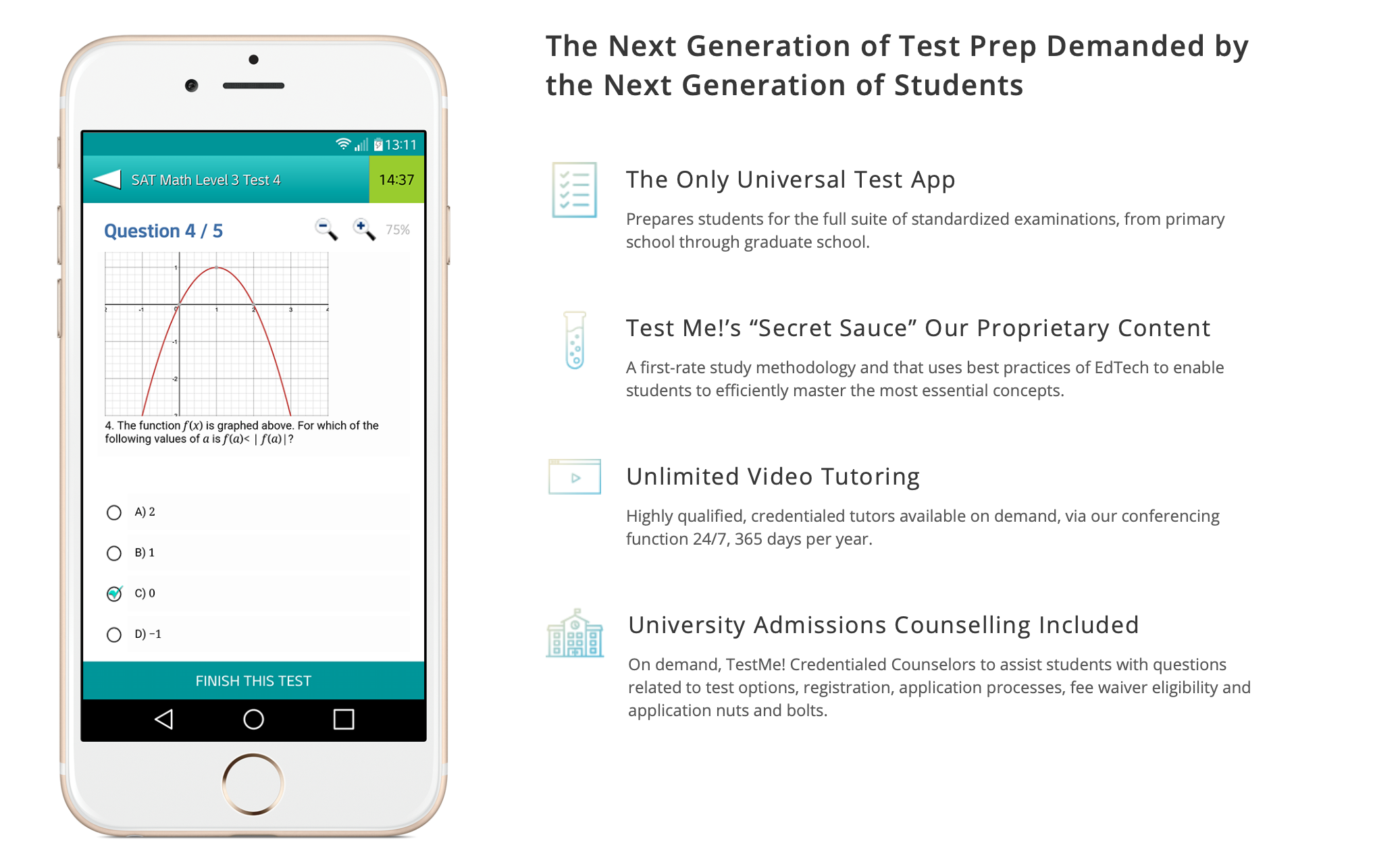Test Me is a free app designed to help students prepare for exams like SAT and TOEFL by understanding their real level before studying.